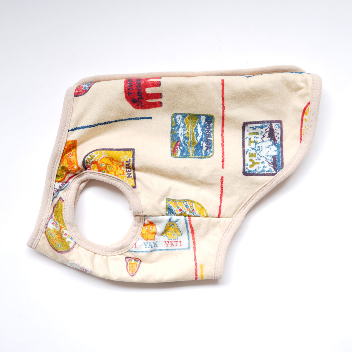 プリントのかわいさに一目ぼれして選んだ生地で仕立てました。ネルシャツに使われるようなやさしい起毛感のある素材に、あたたかなマイクロフリースを合わせています。